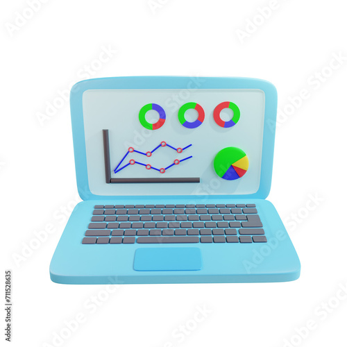3d render laptop with chart
