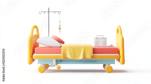 3D Render of a Colorful Hospital Bed with IV Stand and Accessories