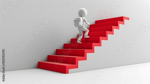 achievement, ambition, aspiration, determination, future, goal, graph, hope, metaphor, opportunity, optimism, progress, render, success, symbolic, three-dimensional, upwards, graphic, career, motivation, finance, person, up, businessman, carpet, step, positive, growth, illustration, man, business, ladder, white, art, abstract, digital, red, concept, elevation, design, three-dimensional, ascent, stair, climbing, journey, staircase, background, simple, copy space