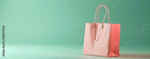3D render of a pink shopping bag on a pastel green background, ideal for design mockups with ample copy space.