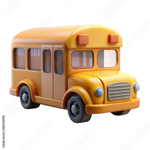 three-dimensional, school, bus, yellow, transportation, vehicle, transport, education, cartoonish, stylised, illustration, iconic, public, commute, travel, automotive, render, digital, art, clean, design, isolated, object, transparent, background, commercial, use, stock, image, bright, childhood, nostalgic