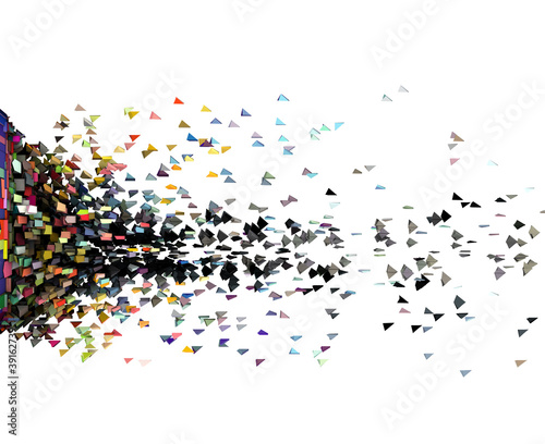 3d render of explosion in many colored fragmented pieces