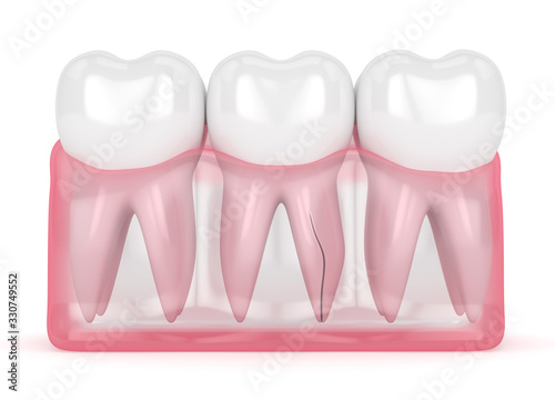 3d render of gum with cracked tooth root