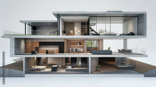 interior, cross section, interior design, architecture, house, contemporary, residential, living room, kitchen, bathroom, bedchamber, apartment, furniture, decor, floor plan, concept, luxury, indoor, home interior, modern architecture, home decor, realistic, inside, domestic, lifestyle, modern style, home construction