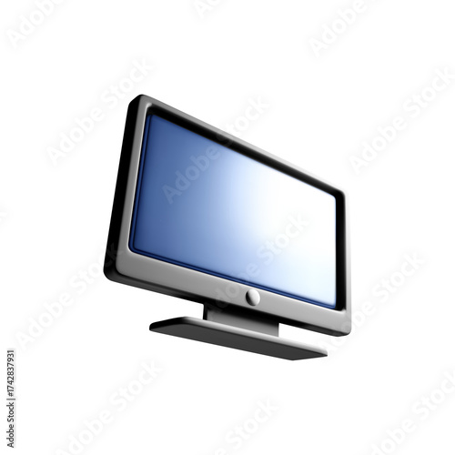 monitor, screen, display, computer, technology, device, digital, electronic, flat, desktop, silver, blue, three-dimensional, render, illustration, isolated, white, background, modern, equipment, design, object, view, multimedia, presentation, blank, interface, video, work, hardware, thin, realistic, minimalist, lcd, workspace, nobody
