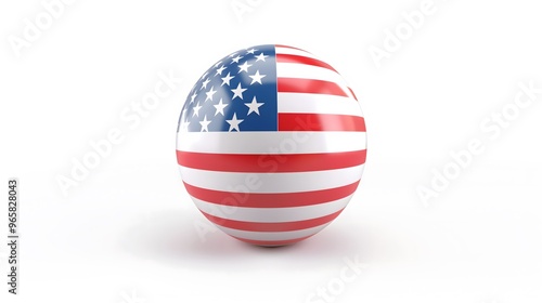 3D Render of USA Flag on Sphere Shapes Isolated on White Background