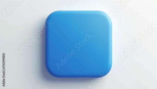 3D rendered blue square icon with rounded corners on white background. Blank button template ideal for app interfaces, web design, digital interfaces. Represents technology, business, user
