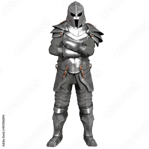 3D rendered illustration of a male silver armor with its helmet in a pose, isolated on transparent background