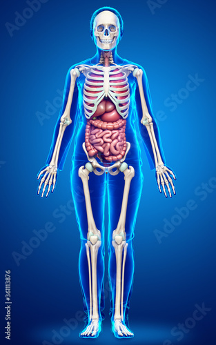 3d rendered medically accurate illustration of female Internal organs and skeleton system