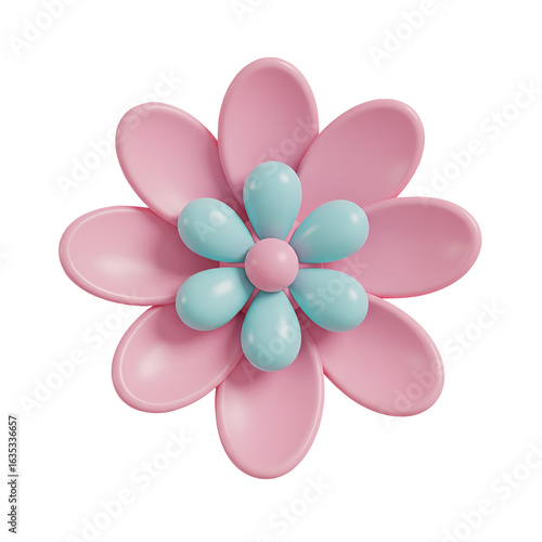 3D Rendered Pink Flower with Blue Petals Isolated on Transparent Background