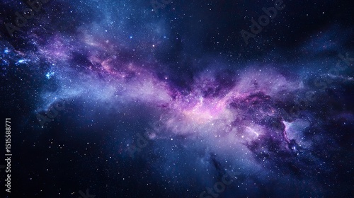3D rendered vector illustration of stunning purple and blue nebulae in a starry night sky. Shades of purple, pink, and dark sky blue on a black background.
