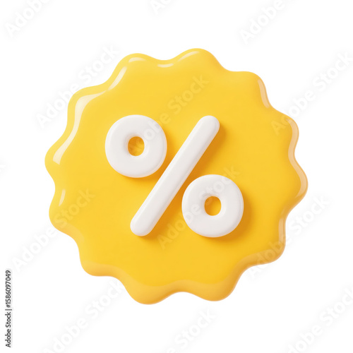 3D Rendered Yellow Discount Badge for Sales Graphics