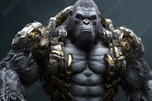 game, gorilla, suit, style, illustration, person, future, background, battle, monster, transformation, technology, pose, horror, fantasy, fear, fight, render, costume, white, halloween, three-dimensional, body, whole, isolated, cyborg