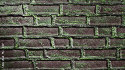 3D rendering. High quality 3D render. Brick texture with moss. Bricks in a concrete wall. Concrete wall. Wall of a wall with many bricks.