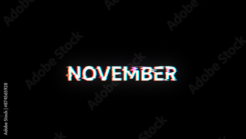 3D rendering November text with screen effects of technological glitches