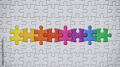three-dimensional, rendering, illustration, puzzle, white, colourful, connection, teamwork, oneness, diversity, integration, cooperation, support, problem, solving, strategy, creativity, innovation, business, concept, success, leadership, idea, decision, development, goal, solution, inspiration, cognition, intelligence, vision, partnership, marketing, research, organisation, education, startup, growth, planning, achievement