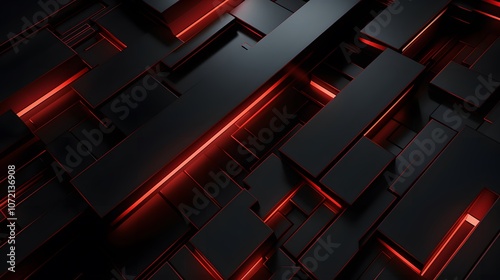 3d rendering of black and red abstract geometric background. Scene for advertising, technology, showcase, banner, game, sport, cosmetic, business, metaverse. Sci-Fi Illustration. Product display