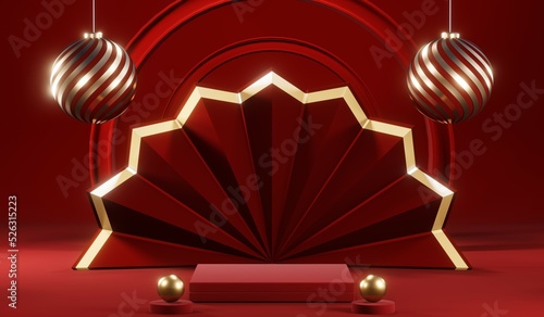3D rendering of blank product background for cream cosmetics Modern red podium background