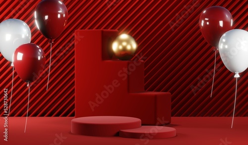 3D rendering of blank product background for cream cosmetics Modern red podium background