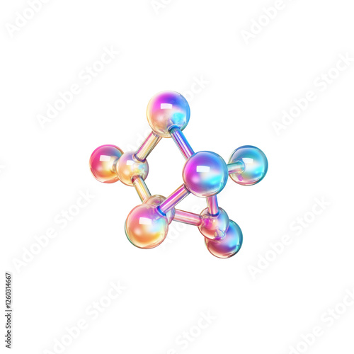 3D rendering of colorful and shiny chemical structure, isolated on white background.