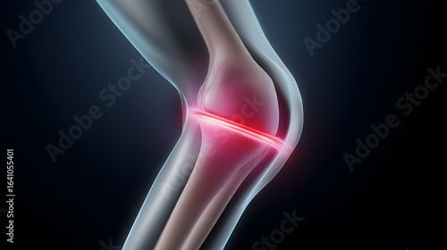 3D rendering of human knee joint with highlighted pain area. Perfect for medical, orthopedic, and health visuals.