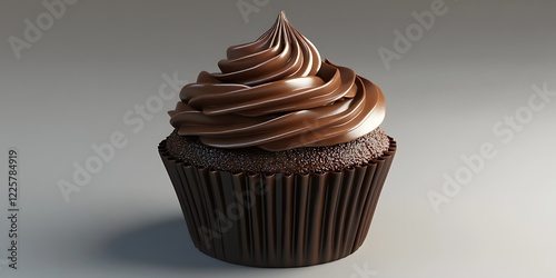 3D rendering of soft chocolate cupcake with frosting