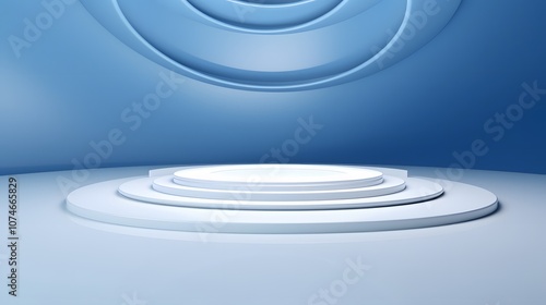 3d rendering of white and blue abstract geometric background. Scene for advertising, technology, showcase, banner, game, sport, cosmetic, business, metaverse. Sci-Fi Illustration. Product display