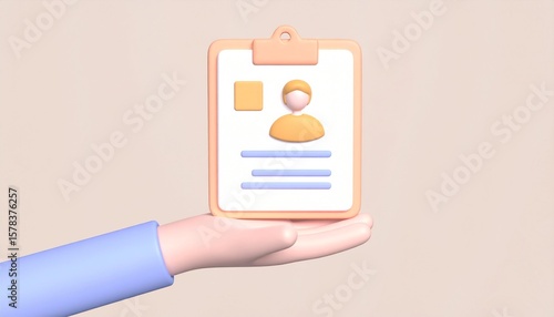 3D resume document icon floating above hand