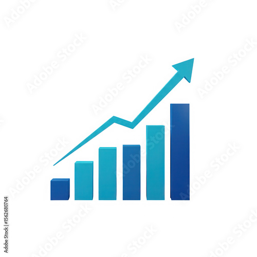 three-dimensional, bar chart, arrow, success, stock exchange, infographic, statistic, chart, diagram, increase, progress, achievement, investment, finance, blue, realistic, isolated, presentation, marketing, illustration, render, upward, graph