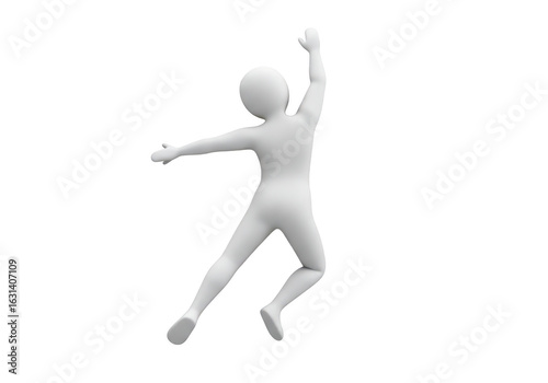 3d white figure jumping in the air with arms raised, isolated on transparent background