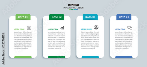 4 data infographics tab layout template. Illustration business abstract background.