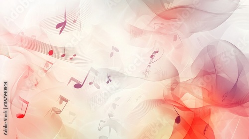 42.A dynamic and flowing pattern of musical notes scattered across the background in varying sizes and styles. The notes swirl around in an elegant dance, creating a sense of rhythm and melody. The