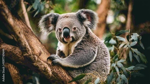 4K Wildlife Wallpaper of a Koala Bear Eating Eucalyptus Leaves While Sitting on Tree Branch
