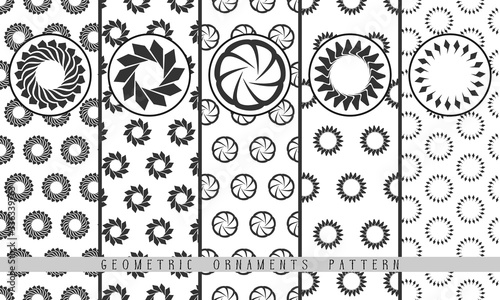 5 geometric ornaments pattern. Seamless. Textile ornament. Patterns, backgrounds for your design. Pattern in hipster style. Pattern is suitable for posters, wallpaper, fabric or wrapping paper