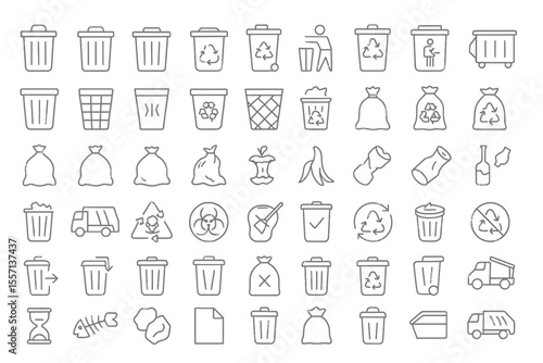 50 Waste Management Line Icons: Recycle Bin, Trash & Rubbish Editable