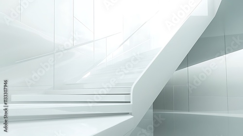 7. A modern staircase design with glass panels and white steps, highlighted against a white background