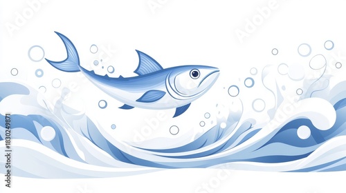 72.A customizable vector banner template for World Tuna Day, with a dynamic illustration of a tuna fish swimming across waves, and plenty of space for editable text, ideal for social media posts or