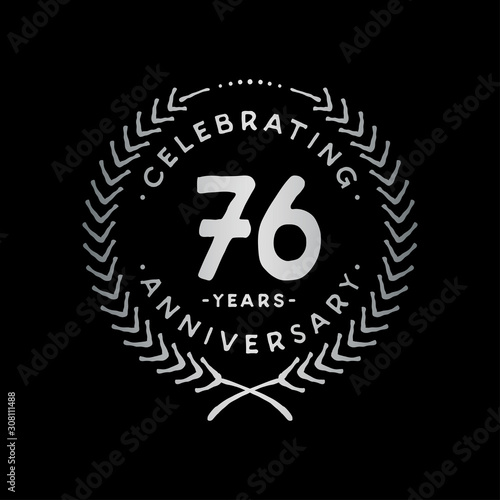 76, grey, silver, metal, age, anniversary, badge, birthday, business, celebrate, celebrate, celebration, ceremony, certificate, company, congratulation, decoration, design, drawn, event, happy, illustration, invitation, jubilee, laurel, logotype, number, retro, seal, signs, stamp, success, symbol, th, vector, vintage, web, year