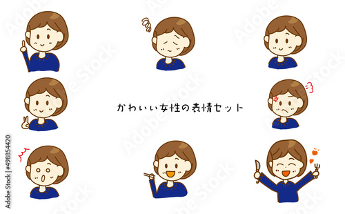 woman, set, expression, pose, pretty, sweet, vector, illustration, handwriting, original, people, smile, variation, girl, children, waist up, version, japanese, young, pease, surprised, surprised, trouble, meal, meal, resent, point, check, shortcut, bob, mother, mother, homemaker, joyful, delicious, sad