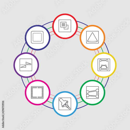 8 colorful stroke icons set included square, flip, crop, pen, perspective, transform, cone, ungroup