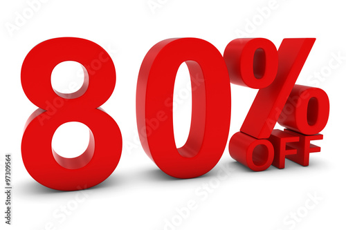80, 80, percent, percentage, number, digit, figure, red, three-dimensional, text, symbol, signs, icon, isolated, isolated on white, white, white background, graphic, illustration, shadow, sale, discount, promo, promotion, reduced, reduction, retail, shop, deal