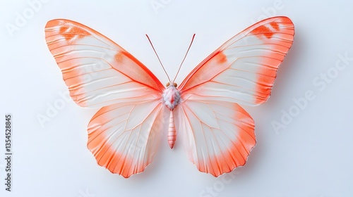 81. A butterfly with soft peach wings featuring light orange accents, isolated on a white backdrop