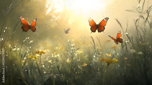 90. A peaceful meadow with butterflies flitting about and tall grasses