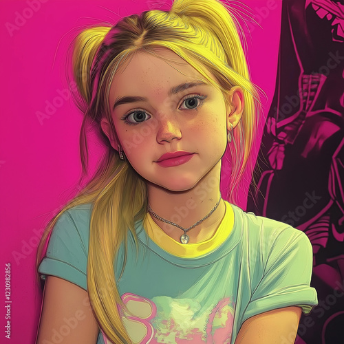 90s Style Cartoon Portrait – Trendy Digital Art of a Cool Teen Girl