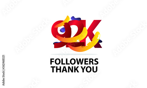 92K,92.000 Followers Thank you logo Sign Ribbon Gold space Red and Blue, Yellow number vector illustration for social media, internet - vector