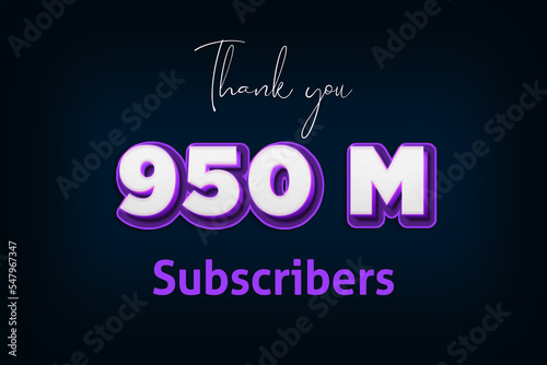 950 Million subscribers celebration greeting banner with Purple 3D Design