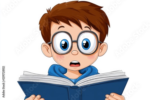 cartoon, illustration, student, practicing, multiplication, table, focused, determined, white, background
