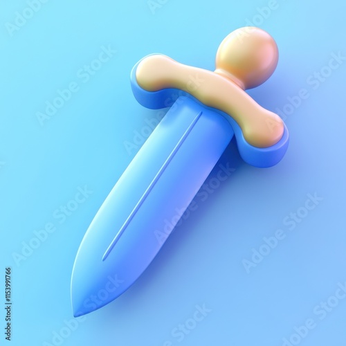 sword, blue background, cartoonish, playful, simplified, minimalistic, isometric, digital artwork, render, illustration, bright, clean, modern, vibrant, smooth, geometric, stylised, artistic, creative, visual, design, aesthetic, fantasy, decorative, conceptual, symbolic, graphic, bold, abstract, eye-catching, engaging, blithe, simple, fun, colourful, texture, whimsical