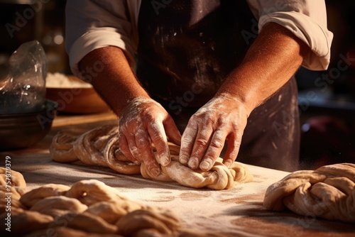 A baker's hands shaping dough into twists for cinnamon twists.