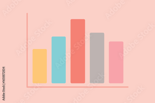 A bar graph with vertical bars in matching pastel colors of yellow, blue, red, gray, and pink, set against a soft pink backdrop. The bars vary in